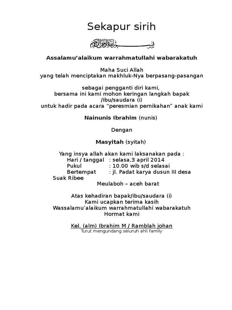 Contoh Sekapur Sirih Rylandcxt